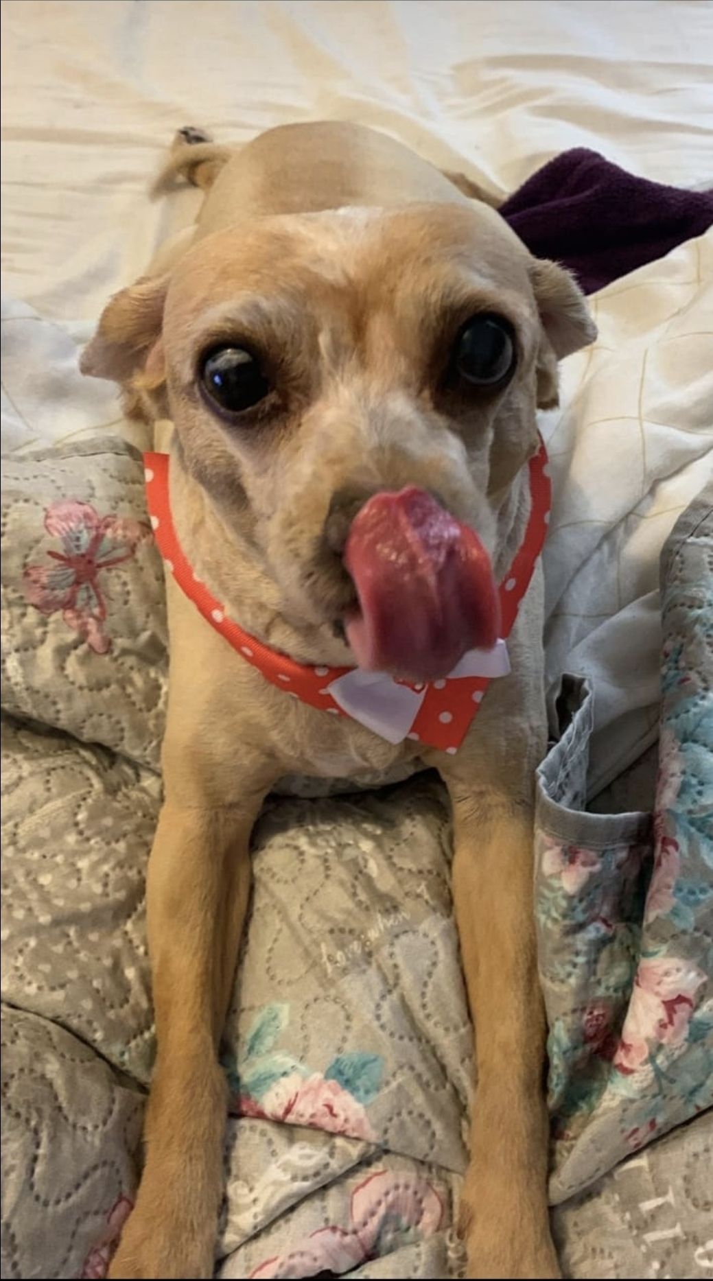 Lola Maria foi encontrada há dez anos correndo esbaforida pelas ruas. Encontrada pela Romy e pela Ingrid, foi trazida para nós. Assim, a cachorrinha magrela e sapeca foi crescendo… para os lados. Muito gulosa, o seu cardápio era extenso em termos de gostos: banana, mamão, abacaxi, melancia, ovos mexidos e ração molhada. Quem chegava em casa nem sempre era bem recebido. Para alguns, os “lambeijos” mais rápidos da Zona Norte de São Paulo muitas vezes invadindo as bocas desavisadas das visitas. Ou, para a nossa chateação, mordidas traiçoeiras em calcanhares menos protegidos.