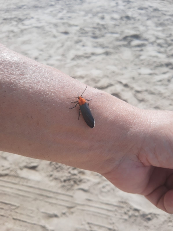 Rapidamente, recolheu as asas abertas internas sob a externa, de proteção. Talvez ela tenha sentido que tenha chegado a um porto seguro, tão longe da vegetação. O leptóteno pousado em meu braço pareceu não querer se mover. Depois de um minuto, delicadamente eu coloquei o indicador sob as suas patinhas e a transportei para o cabo do guarda-sol.