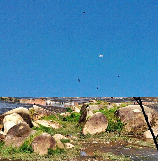 Na manhã de sábado, enquanto caminhava rumo à academia, observei uma concentração incomum de urubus (pela quantidade, os tenho chamado de pomburubus) sobrevoando bem alto a área do Piscinão do Guaraú. Talvez tivesse uns quarenta ou mais, voando em círculos em torno de um ponto mais claro no céu azul. Para a minha surpresa, se tratava da Lua em seu último quarto. Foi um benefício adicional ao meu esforço de voltar à atividade física. No céu da cidade de São Paulo é raro a vermos, mesmo à noite, já que as luzes artificiais impedem que o nossos olhos alcancem o belo astro para além da prisão luminosa em que estamos.