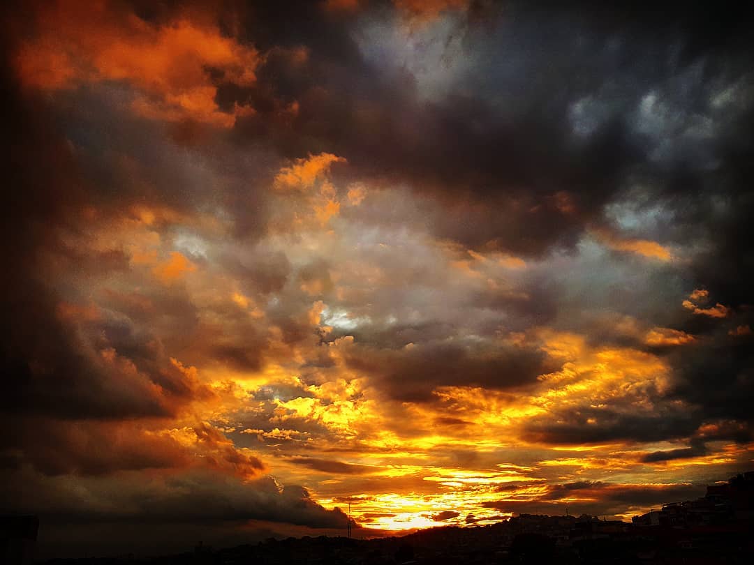 visão do final de tarde crepúsculo escavado em fogo… duas horas depois noite feita o clima mudou chuva se abateu zona norte atingida clima — palavra que termina com o artigo “a” — substantivo masculino humor feminino… indeterminado terrível exuberante.