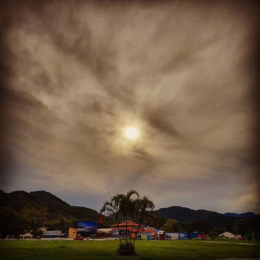 2021. Ubatuba. Hoje, o azul imperou durante a maior parte do dia. E o Sol, posto a nu ou desanuviado, queimou peles e pensamentos. De manhã e à tarde, no entanto, as nuvens o vestiram, deixando a temperatura menos indecente.