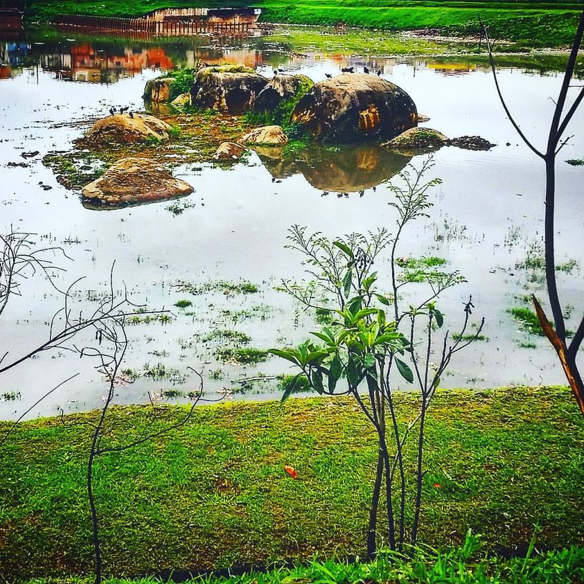 Após as chuvas da noite, no Piscinão Guarau, os urubus esperam a água baixar para celebrarem o almoço de domingo, em família.