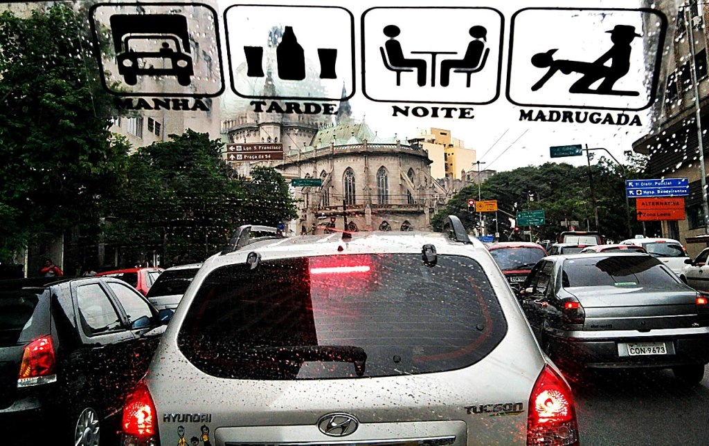 Primeiro dia de outono e não importa que parte do dia estejamos – manhã, tarde, noite ou madrugada – sempre haverá chuva, amena ou intensa, em algum ponto da cidade pelo qual qual passamos. Como tivemos problema com a nossa “kombosa”, emprestamos uma outra de amigos que conhecem como dividir as horas do dia. Neste momento, passávamos por trás de uma igreja. Em São Paulo, isso não significa estar no lugar mais calmo da cidade, mesmo porque, tratava-se da Catedral da Sé, no Centrão. Um lembrete, mesmo agora sendo noite, estamos, meu irmão, Humberto, e eu, trabalhando no lugar onde os outros se divertem…