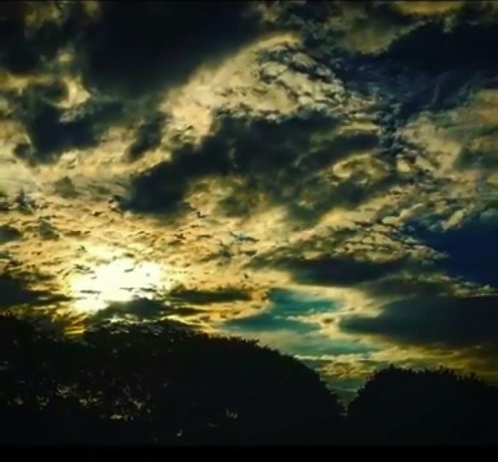 A Chuva, ciumenta, assumiu o controle do curso do dia. No entanto, agora à tarde, ela não pôde impedir o triângulo amoroso entre a Terra, o Céu e o Sol. Silenciosamente, os três combinaram de se encontrar no leito macio do horizonte… O encontro foi breve, porém! Logo, soltando raios e trovões, a chuva, furiosa, reassumiu o controle da situação. Pois é, quem está na chuva, tem que se saber amar!