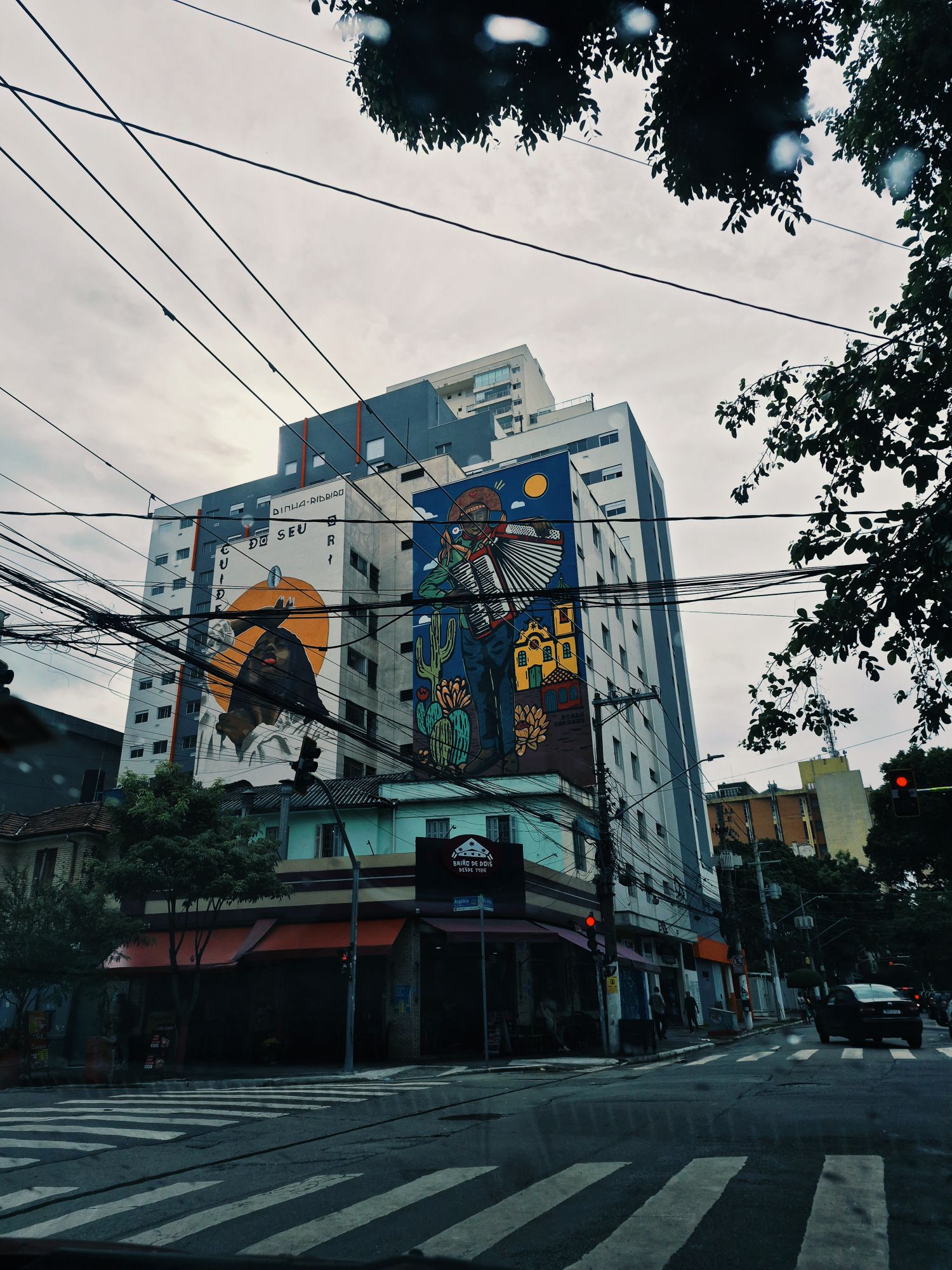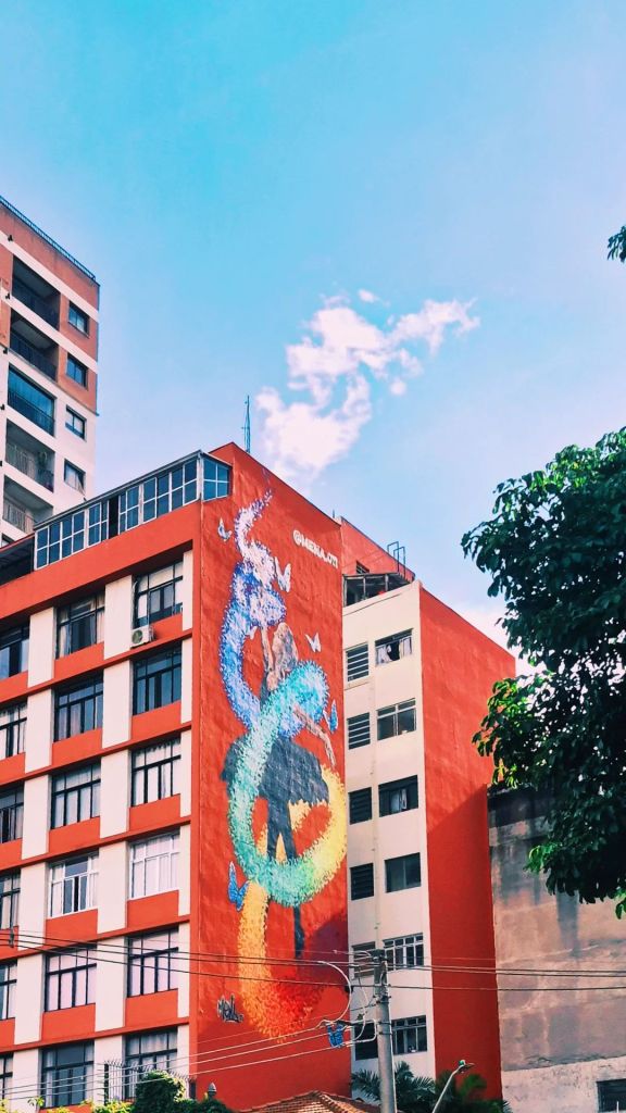 Essas duas pinturas se encontram em construções de Santa Cecília, um bairro junto ao Centro que passa por um processo de ressurgimento em termos de investimentos de novas construções, mas que também apresenta um cenário de São Paulo antiga. Conheço muito a região porque uma das minhas filhas mora há alguns anos por lá, além de ter trabalhado muitas vezes no Clube Piratininga por duas décadas.
