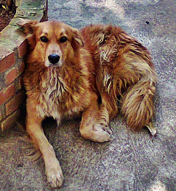 A Domitila foi resgatada pela Romy na rua, toda ferida de sarna e tingida de tinta jogada por diversão (?) por algum ser incapaz de sentir compaixão, mas “articulado” o suficiente para perpetrar esse ato covarde. Foi pacientemente cuidada pela Romy e pelas outras meninas. De um “etezinho” que parecia, transformou-se em uma bela fêmea da espécie dos mamíferos canídeos. De tão esperta que sempre foi, em determinado momento, conseguiu escapulir de nossa atenta guarda e engravidou antes que a castrássemos. Doamos todos os filhotes, menos um que, feinho que só, foi preterida por todos.