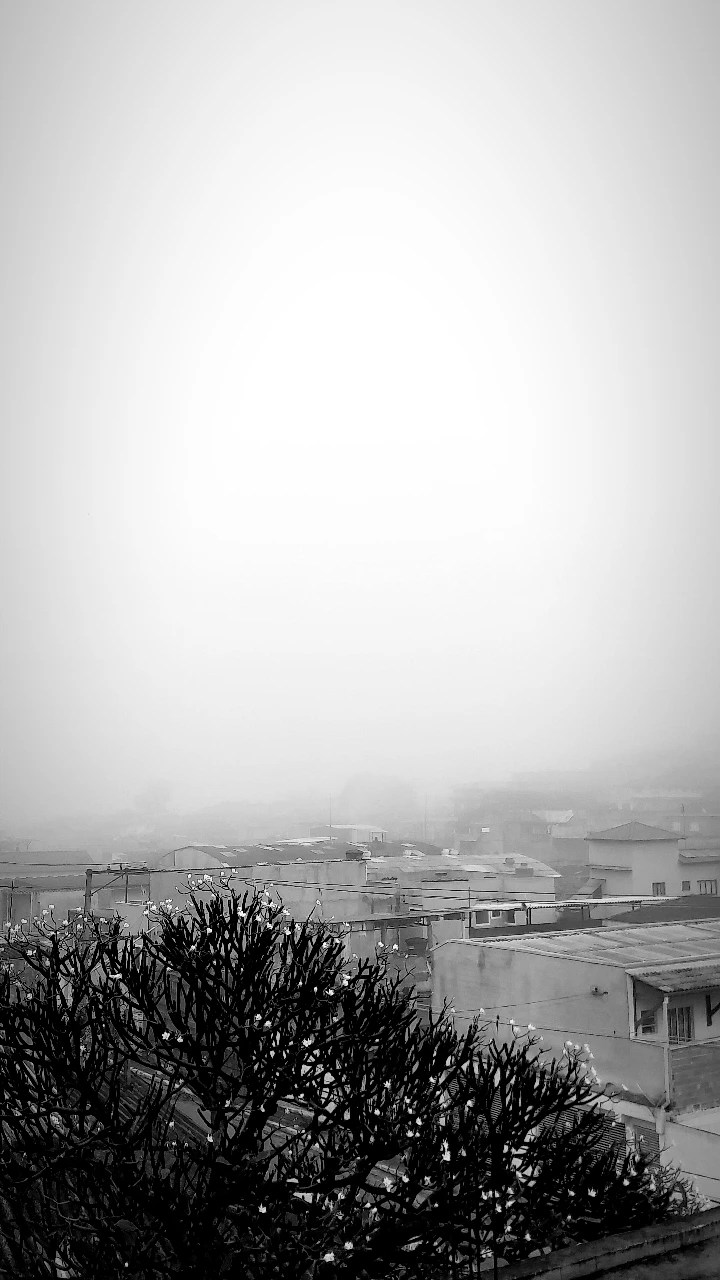 Este registro de minha Periferia, na Zona Norte, mostra um dia de nebulosidade incomum, a ponto da Tânia dizer que apenas se lembrava de paisagem parecida quando chegou a São Paulo, há 35 anos, “vinda de um sonho feliz de cidade”. Eu, morador desde os 8 anos na região, vi e vivi muitos desses horizontes próximos. O tom cinza deu ao registro um toque de foto PB.