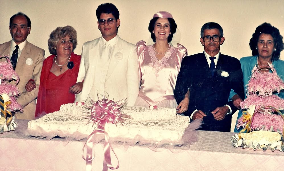 Da esquerda para a direita: meus pais, Sr. Odulio e D. Madalena; eu e Tânia; Sr. Manoel e D. Floripes.