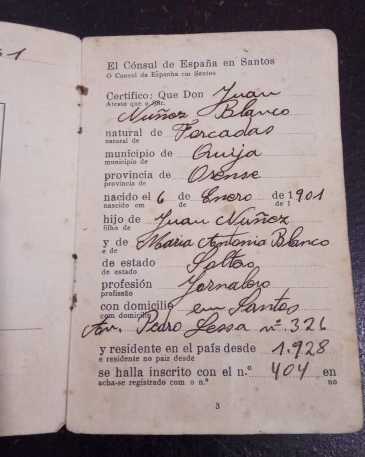 A Ingrid, minha filha do meio, me perguntou sobre a origem da parte espanhola da família, do lado de minha mãe. Recorri aos meus primos mais velhos para ter conhecimento exato dessa informação. Uma delas, a Arilda, me enviou a página do documento que meu tio-avô, Juan Nuñez Blanco que, segundo a minha irmã, foi meu padrinho de batismo, lhe foi outorgado pelo Cônsul da Espanha Em Santos. Os seus filhos chegaram a visitar o local do nascimento do irmão do bisavô, Juan e do próprio bisavô, Antônio, meu avô. Eu, por algum motivo obscuro, nunca tive o desejo de “rever” as terras de onde um dia vieram. Agora, estou quase mudando de ideia. Provavelmente essa mudança se deve à pesquisa que realizei para me informar.