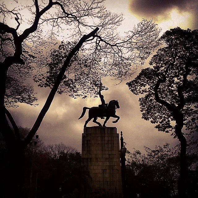 “Duque de Caxias, empunhando o seu sabre, cavalgando eternamente o seu cavalo. Conheci esse monumento ainda bem menino e ele continua por lá, impassível, rumo ao futuro.” — escrevi sobre essa imagem, em 2014. O monumento do Duque Caxias está estacionado na Praça Princesa Isabel. Ambos, são nomes de referência do Segundo Império. Enquanto a Redentora está sofrendo um cancelamento por parte do movimento negro, apesar de ter assinado a Abolição da Escravatura, a atuação de Caxias tem sido revisada como senhor da guerra. Guindado à condição de grande nome do Exército, talvez a sua fama de estrategista e honradez tenha sido convenientemente inflada ao logo do tempo para alimentar o herói. A praça em si, está ocupada por desvalidos, moradores de rua, drogados, pessoas que perderam a guerra contra o Sistema, escravizados pelo vício.