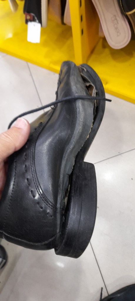 Na segunda-feira, para ir ao meu compromisso, decidi usar velhos sapatos, confortáveis, bicos largos, conhecedores dos meus pés, afeitos aos seus formatos. Na ida, eu percebi que havia começado a abrir a lateral do esquerdo, mas achei que não seria um problema tão grande quanto o que se tornou com o aumento do rasgo como se fora uma gradual abertura de um portal quântico para o escape do pé da dimensão ao qual estava timidamente recolhido.