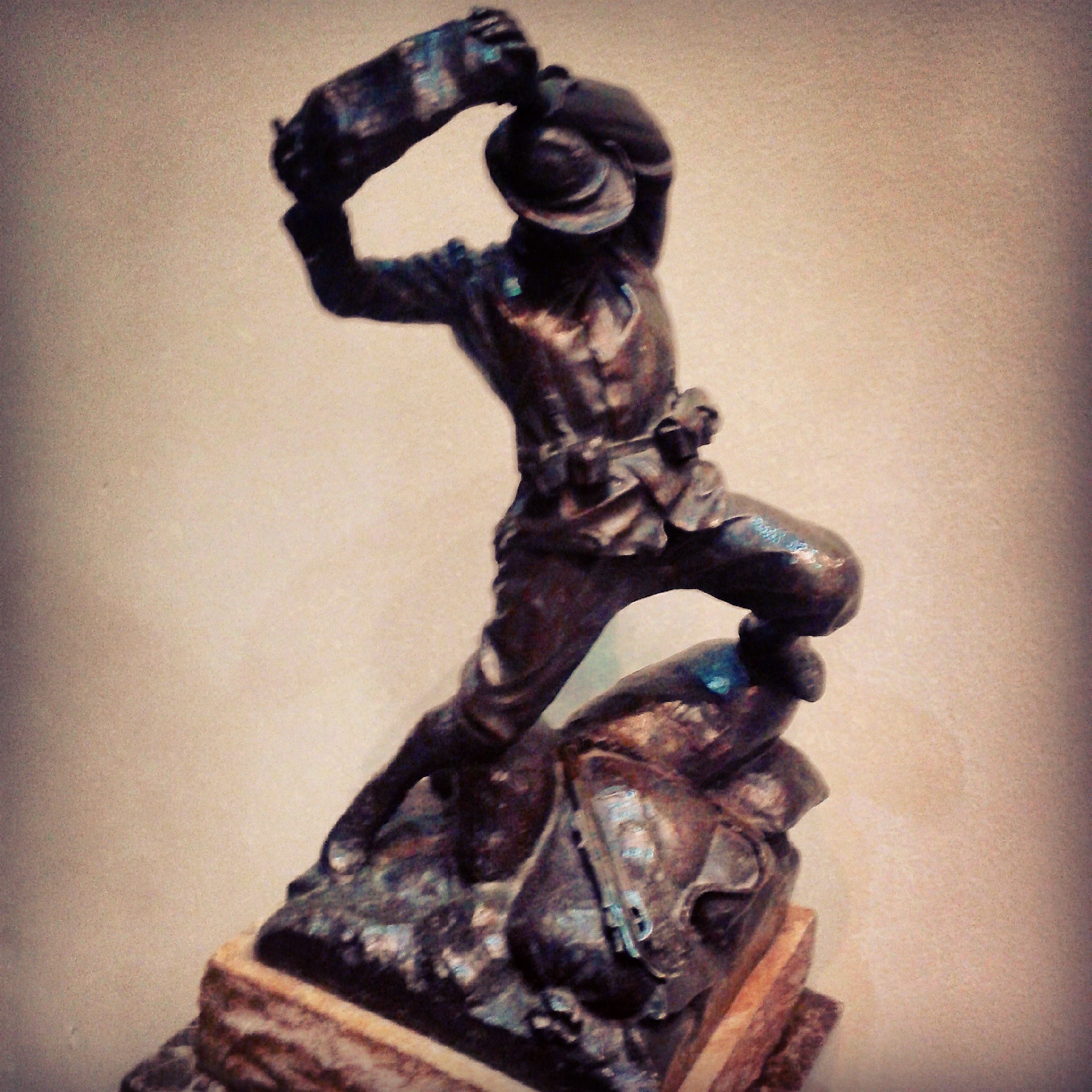 Soldado da 1ª Guerra Mundial, a pior que já existiu. Nela, foram usados pela primeira vez aviões como armas, a utilização de gases venenosos dispersados indiscriminadamente, bombas experimentais a matar milhares nas antigas e ineficazes trincheiras, enquanto baionetas ainda serviam como recurso na luta corpo a corpo. Quando mais não fosse possível, as mãos a agarrarem o que servisse para ser usado como arma constituía o último recurso para matar e sobreviver.