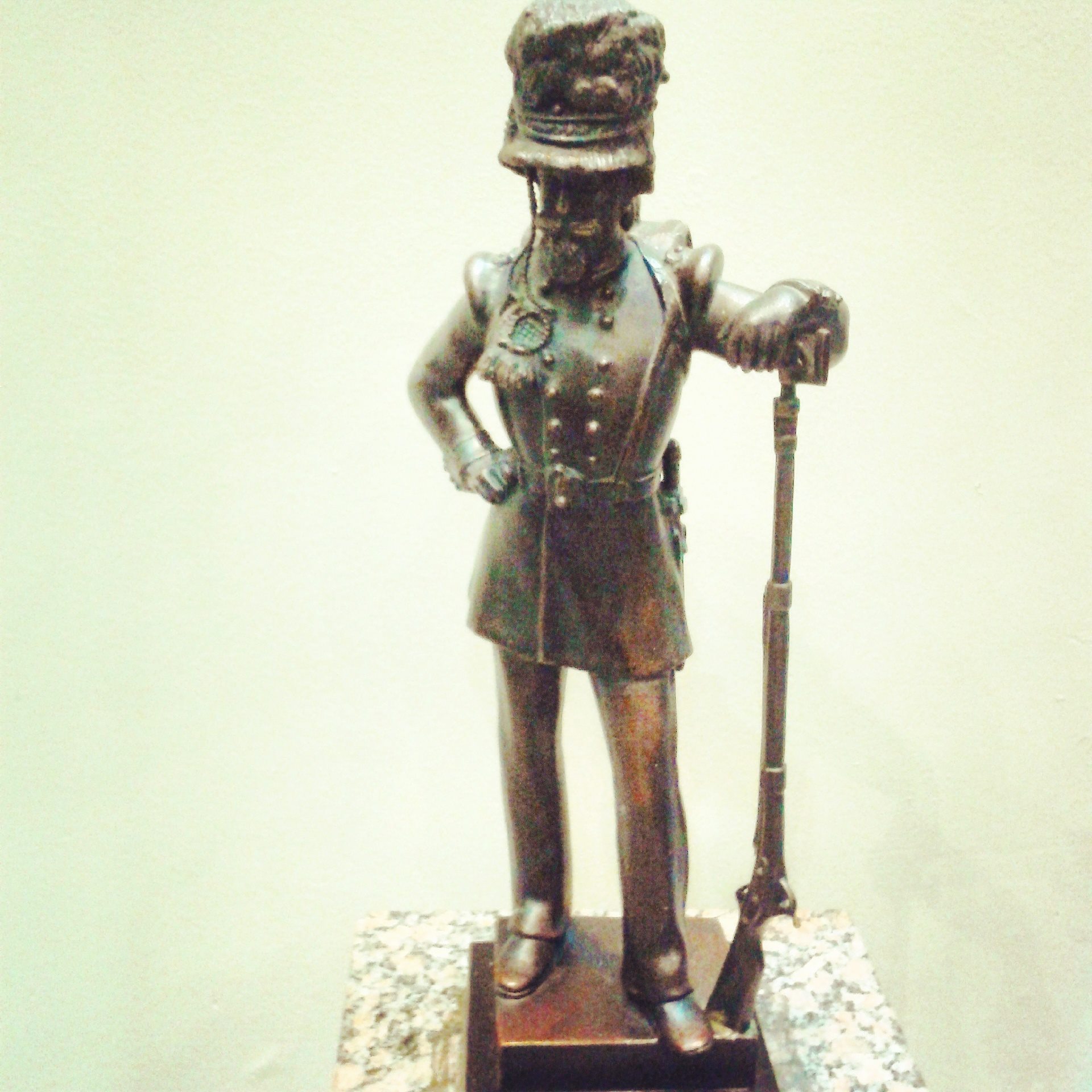 Literalmente, um soldadinho de chumbo. Pelo estilo e uniforme, do final do século XIX. Como se vê, sua postura orgulhosa diz muito sobre aquele que ia para a frente de batalha todos prontos para matar… e poucos para morrer. Incutido de confiança, imagino que não lhe passasse pela cabeça que pudesse perder a vida. Talvez, apenas no último segundo, se lhe fosse dada a oportunidade de vislumbrar a passagem rumo ao não-lugar.